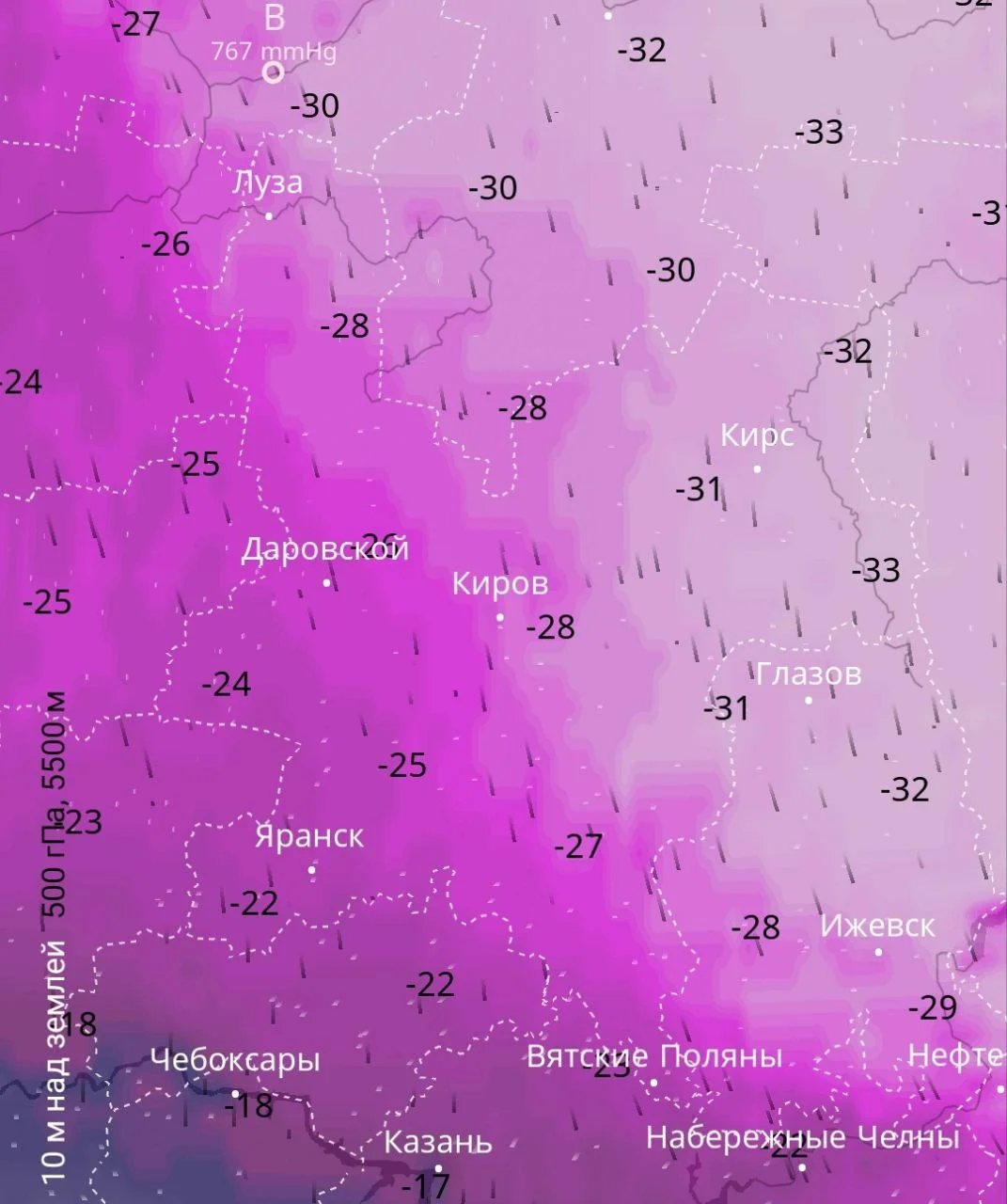 Для жителей Кирова прогнозируется температура около минус 28 градусов, в то время как в юго-западных населенных пунктах, таких как Яранск и Даровской, мороз будет чувствоваться меньше – там столбики термометров покажут примерно 22 - 26 градусов ниже ноля по шкале Цельсия.