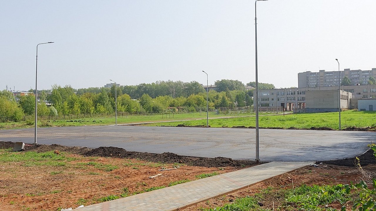 На сегодняшний день около школы вместо аварийных деревьев выложены аккуратные пешеходные дорожки из брусчатки. Помимо этого, преображается спортивная площадка. Пока здесь уложен асфальт, но вскоре появится резиновое покрытие, которое убережет детей от различных травм. Затем на спортплощадку привезут инвентарь для занятий баскетболом, волейболом и футболом.