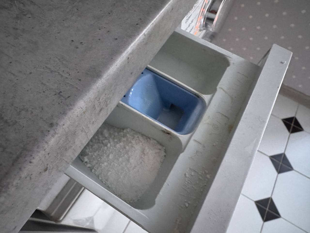 Лоток для моющих средств в стиральной машине кажется чистым только на первый взгляд. В реальности внутри него постепенно накапливается плотный слой из остатков порошка, кондиционеров и воды.