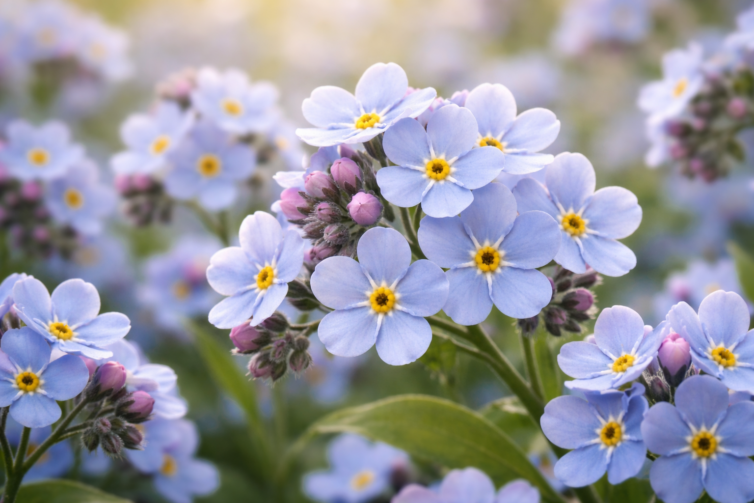 Незабудка остаётся символом нежности и легко расселяется самосевом, создавая голубые пятна в цветнике. Нивяник, известный как садовая ромашка, даёт крупные белые цветы до 15 см в диаметре.