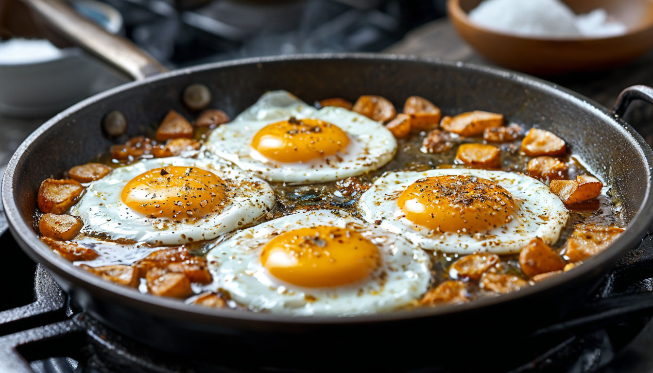 2. Потеря полезных веществ: Жарка на сковороде требует использования масла, которое при высоких температурах выделяет вредные вещества. Кроме того, само масло может впитываться в белок, ухудшая его питательные свойства. Яйца содержат важные витамины и минералы, такие как витамин B12, железо и селен. При жарке часть этих веществ разрушается, что снижает общую пользу продукта.