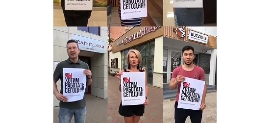 Ранее бизнесмены проводили подобный флэшмоб, выкладывая фотографии с плакатами в сеть.
