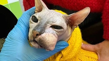 Владельцы кота-сфинкса по кличке Егор обратились в клинику "Вместе с Верным другом" в Кирове, когда были в полном отчаянии. В другом месте им советовали усыпить животное, потому что его заболевание не поддавалось лечению. У кота выявили плоскоклеточный рак, из-за которого на мордочке образовалась большая опухоль.