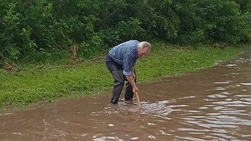 - Пока дорожники спят, хороший человек Василий Иванович чистит ливневку своими силами. Дай бог здоровья ему. Улица Комсомольская.