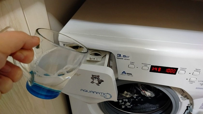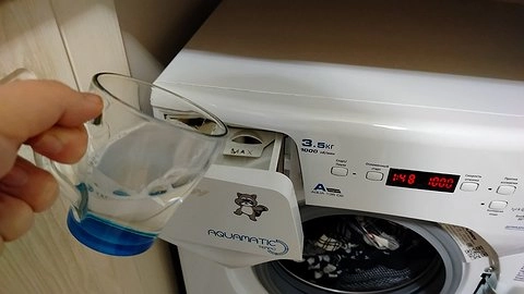Если вам нужно просто освежить белье и избавиться от неприятных запахов, хватит и 50−100 мл уксуса. Его также нужно залить перед стиркой в лоток для стирального порошка.