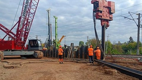 В конце сентября подрядчик перешел к новому этапу работ. Речь идет об укреплении второго котлована, который находится на другой стороне Транссиба. В летнее время удалось укрепить стартовый котлован за счет погружения в землю 269 шпунтов. Теперь же в грунт нужно опустить 298 шпунтов. Строительная площадка располагает всей необходимой для этого техникой, материалами и рабочей силой.
