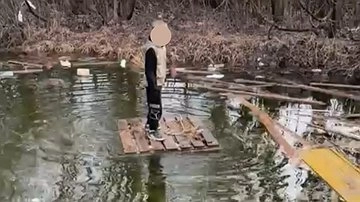 - Я хожу по тропам, как и многие люди из ЖК Скандинавия, чтобы сократить путь. Вчера вечером шла на работу, и мне открылась такая картина: один ребенок бегает вокруг заводи, а второй на плоту посреди этого болота. Запруда достаточно глубокая, потому что у берега уже виден обрыв, - рассказала девушка