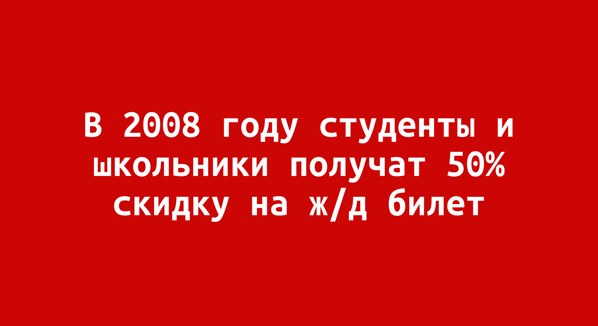 В 2008 году школьники и студенты смогут рассчитывать на 50-процентную скидку при проезде на железнодорожном транспорте. Льгота опять будет представлена не государством, а за счет «железной дороги».