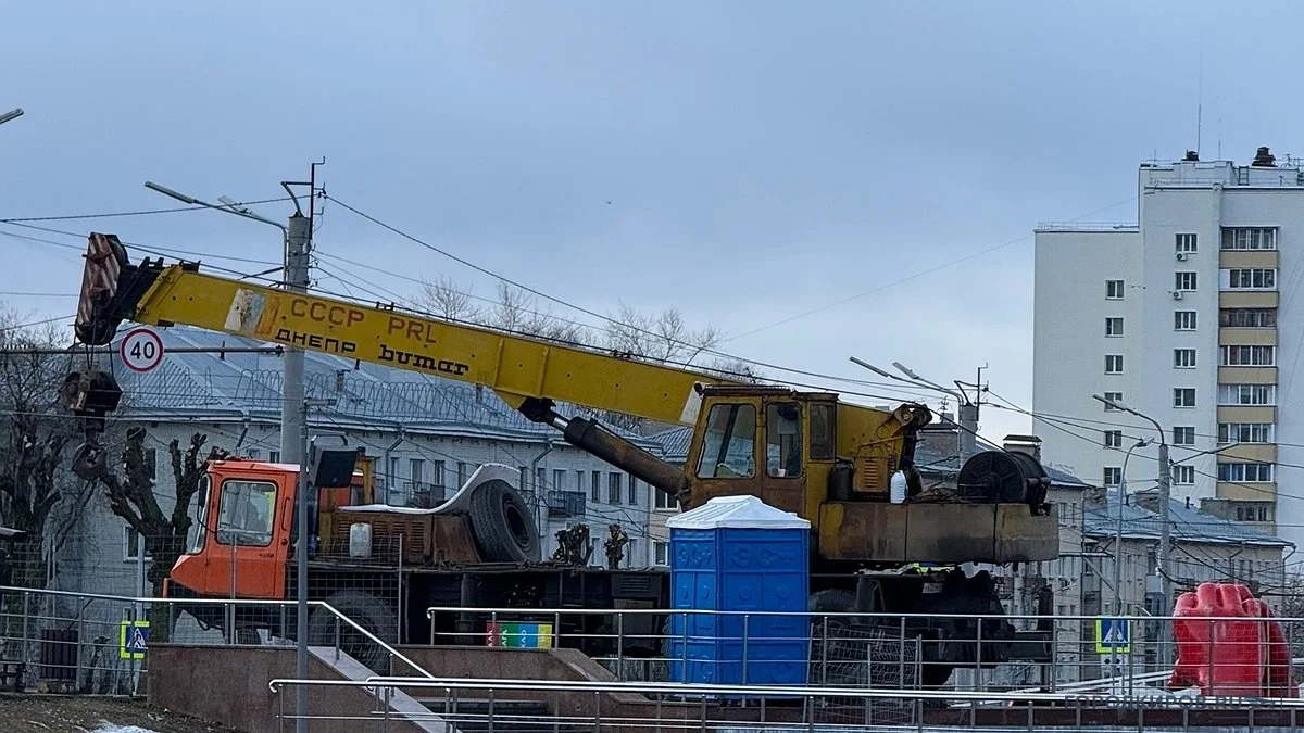 Сегодня днем, 7 апреля, на нижнем пруду в парке Кирова активно шел монтаж конструкций.