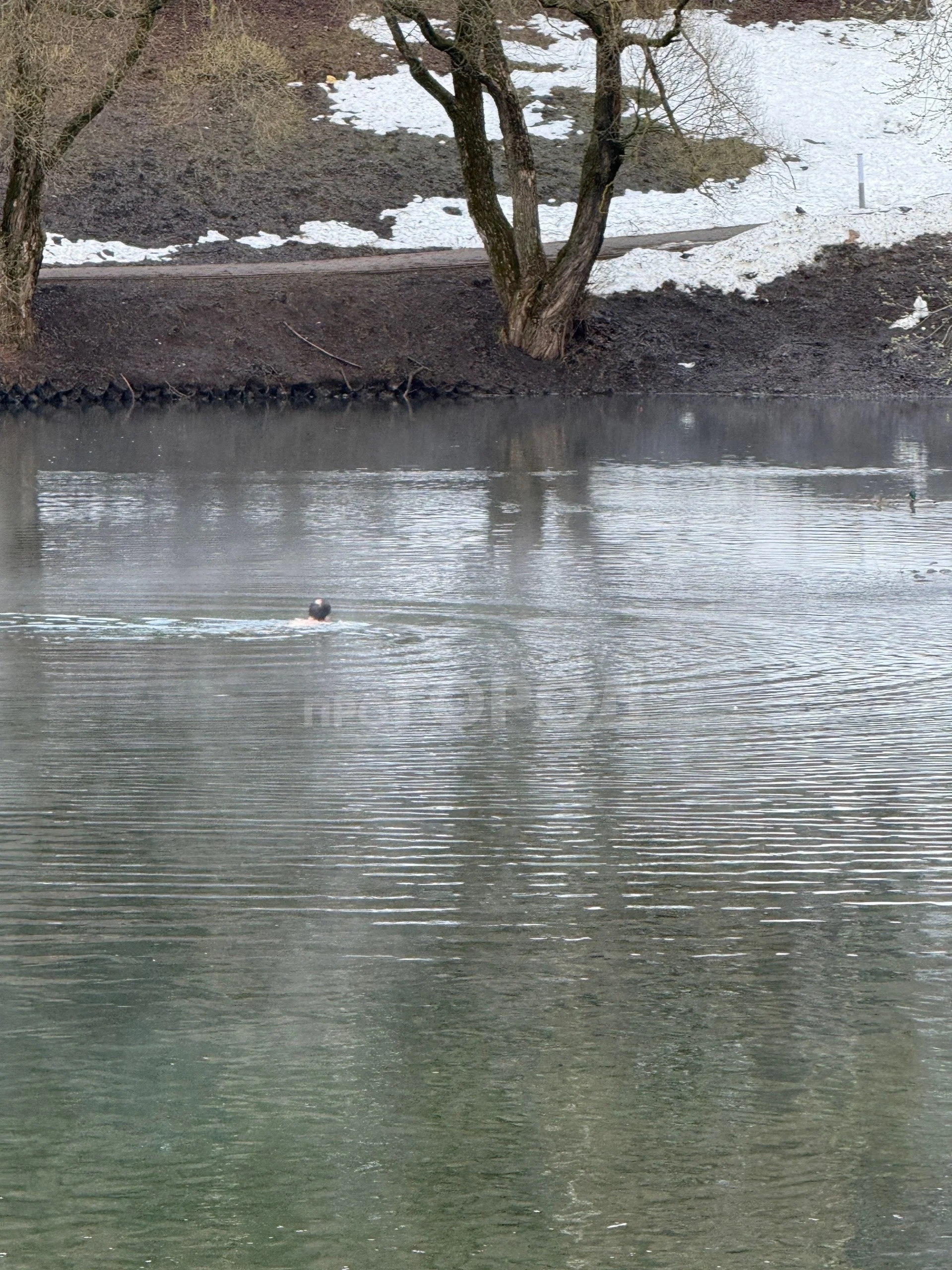 Пока кипела работа, в пруду плавал мужчина.