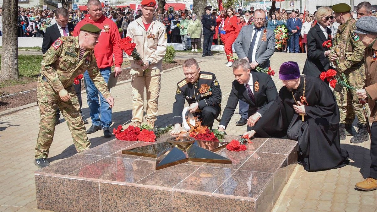 На мемориале воинам-рабочим деревообрабатывающего комбината, погибшим в годы Великой Отечественной войны, в городе Котельнич Кировской области в рамках Всероссийской акции "Храним огонь Победы" ПАО "Газпром" зажжен новый Вечный огонь.