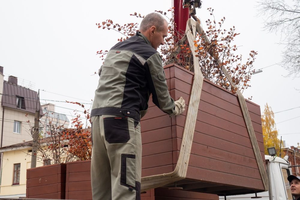 Особенности климата Кировской области требуют обязательного утепления многих видов растений на зиму. Как рассказал сотрудник отдела зеленого строительства дирекции благоустройства Кирова Степан Красков, контейнеры с зелеными насаждениями последовательно вывозятся с разных улиц города — так. после завершения работ на Октябрьском проспекте, бригады переместились на Преображенскую улицу.