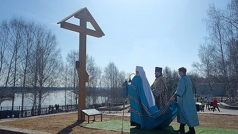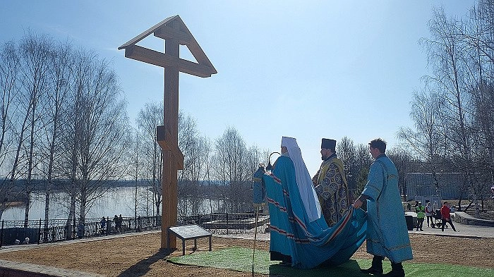 В Кирове начали восстановление сгоревшей Феодоровской церкви. На набережной Грина состоялось освящение поклонного креста.