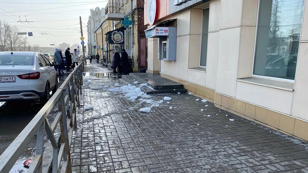 Инцидент произошел днем 17 марта. Глыба льда упала с крыши дома № 67 по улице Ленина. По словам очевидцев, у женщины повреждена голова, а также, возможно, сломана рука. Кировчанке вызвали скорую помощь.