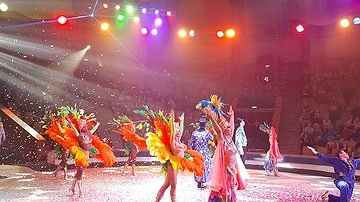 Зрители насладились увлекательным и красочным шоу с участием бесстрашных гимнастов, удивительных иллюзионистов, танцующих медведей, веселых собак-футболистов, каравана гордых верблюдов, устрашающих крокодилов и гигантских питонов и хищных южноафриканских пум. Немало было и экзотических животных.