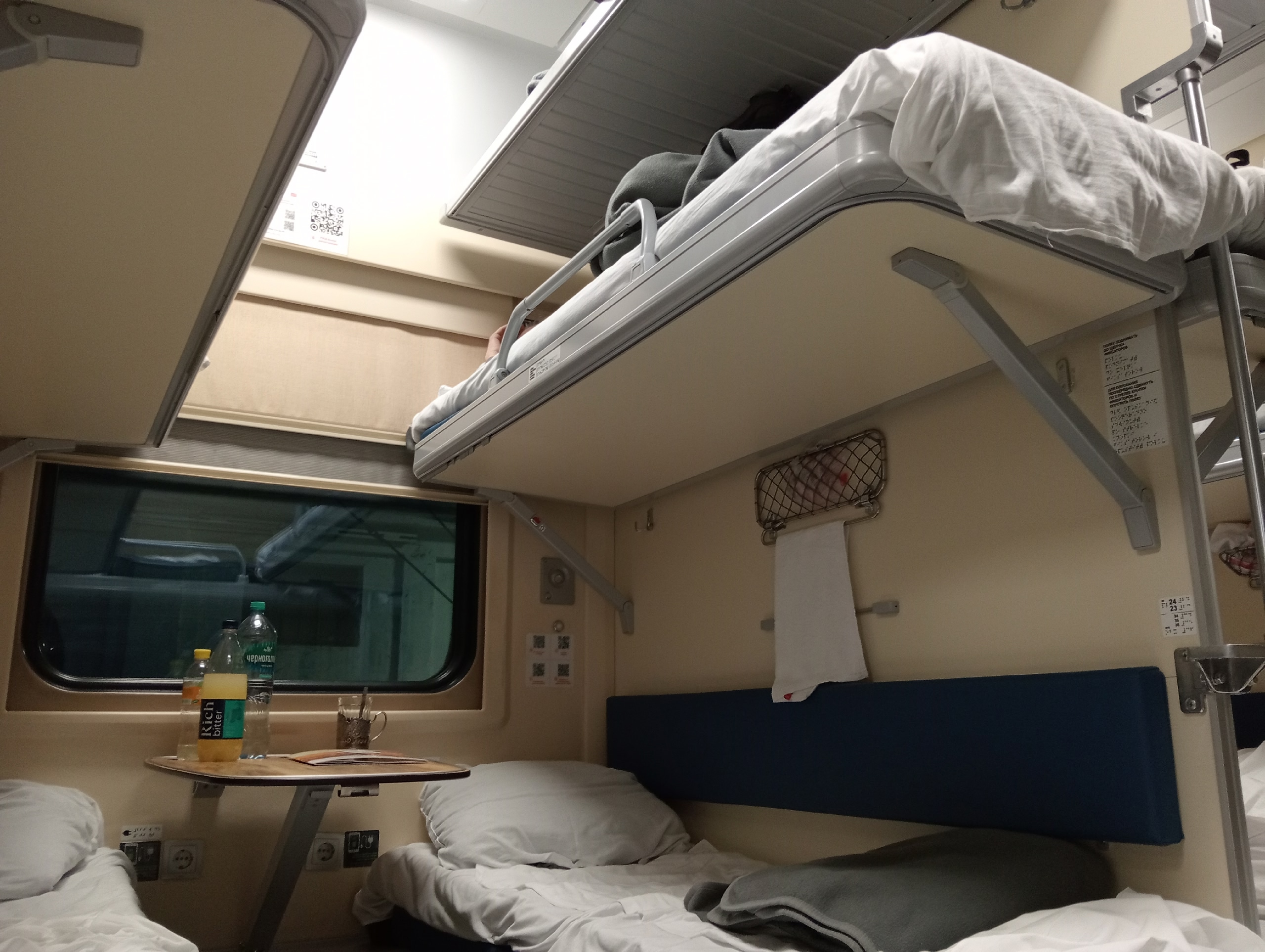 С утра до вечера — с десяти до девяти — двое пассажиров, сидевшие по правилам на верхних полках, не только не собирались уступать пространство, но и активно препятствовали другим пользоваться своим. Они сидели за столиком, ноги протянули на нижнюю полку, ели, говорили, смотрели видео — без извинений, без запроса, без малейшего намёка на уважение к договорённости, которая существует даже в самых грубых формах общественного договора: нижние полки — для отдыха, верхние — для наблюдения .