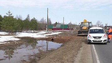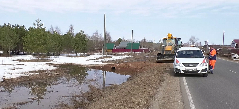 — В марте в ходе противопаводковых мероприятий в данном населенном пункте проводилась расчистка водоотводных труб. И сегодня это способствует отводу воды от трассы Киров — Русское. В настоящее время, чтобы ускорить отток воды с подтопленных территорий, с помощью спецтехники выполняется углубление водоотводных канав, - сообщили в ГДМС.