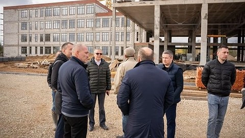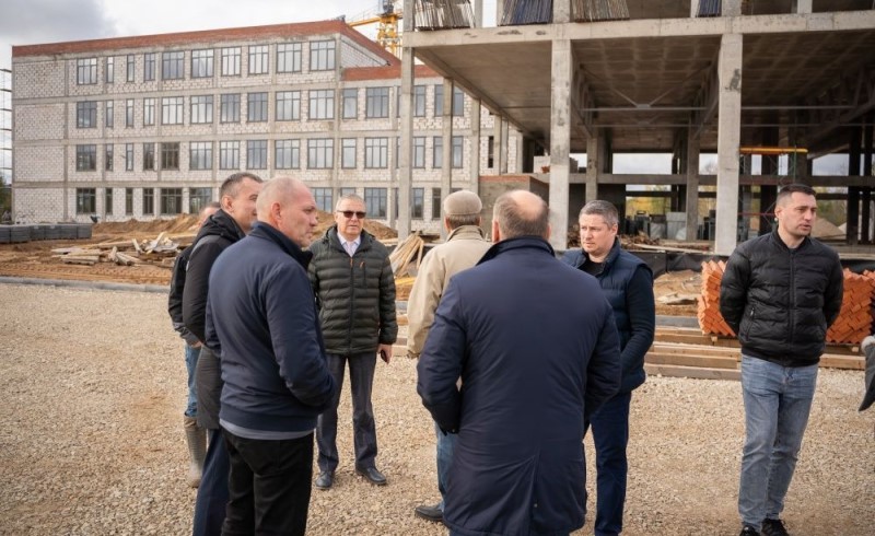 Министр строительства в регионе Михаил Скоков с представителями кировской администрации выехали на улицу Торфяную, где возводится новое здание школы. Каждый день на объекте трудятся порядка 60 работников. Блок А, предназначенный для учебных кабинетов, находится на стадии выполнения внутренних работ, а для блока Б с будущим бассейном и спортзалом установлен монолитный каркас.
